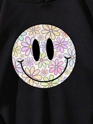 Black Graphics Printed Long Sleeves Polyester Hoodie