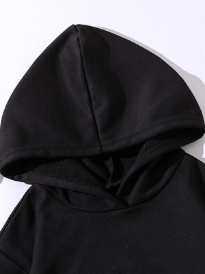 Black Graphics Printed Long Sleeves Polyester Hoodie