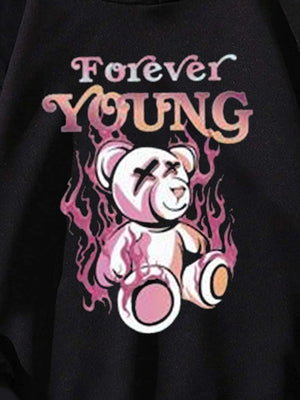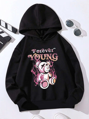 Black Graphics Printed Long Sleeves Polyester Hoodie