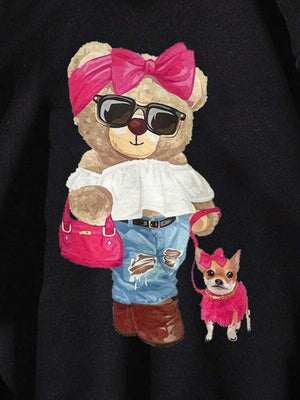 Black Graphics Printed Long Sleeves Polyester Hoodie