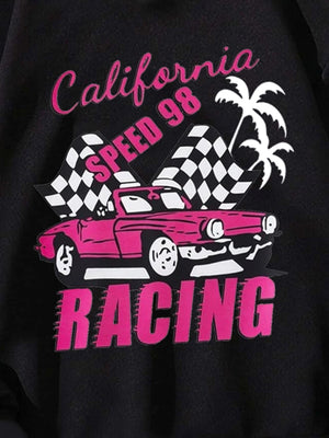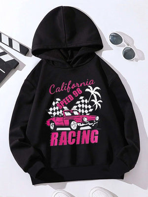 Black Graphics Printed Long Sleeves Polyester Hoodie