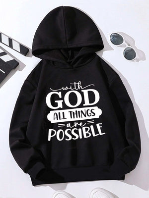 Black Graphics Printed Long Sleeves Polyester Hoodie