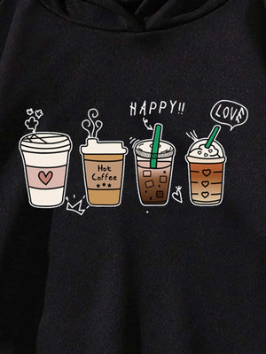 Black Graphics Printed Long Sleeves Polyester Hoodie