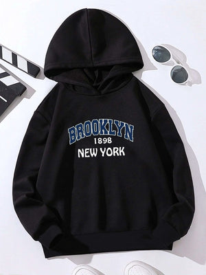 Black Graphics Printed Long Sleeves Polyester Hoodie
