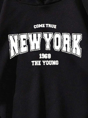 Black Graphics Printed Long Sleeves Polyester Hoodie