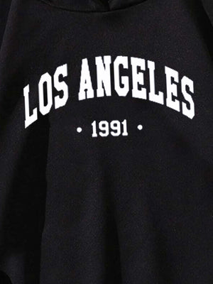 Black Graphics Printed Long Sleeves Polyester Hoodie