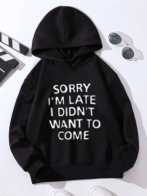 Black Graphics Printed Long Sleeves Polyester Hoodie