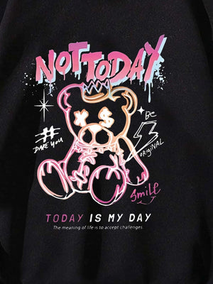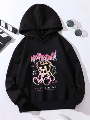 Black Graphics Printed Long Sleeves Polyester Hoodie