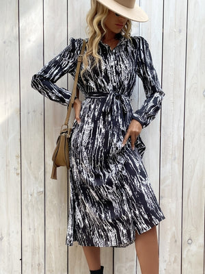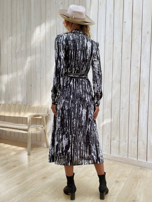 Black Halter Neck Printed Long Sleeves Polyester Dress