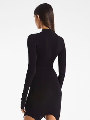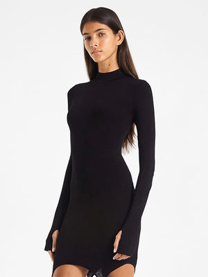 Black High Neck Bodycon Long Sleeves Solid Maxi Polyester Dress