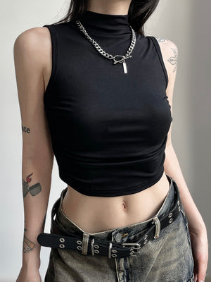 Our black high neck sleeveless solid cotton top is a versatile piece you can dress up or down. The V-Neck silhouette provide a sleek, sophisticated look. Wear it with trousers for work or a skirt for going out.