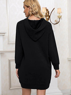 Black Hood Fit and Flare Party Solid Long Sleeves Knee Length Polyester Dress