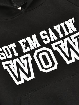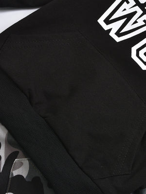 Black Hood Long Sleeves Printed Top & Trousers Polyester Set