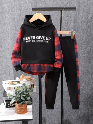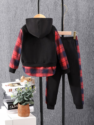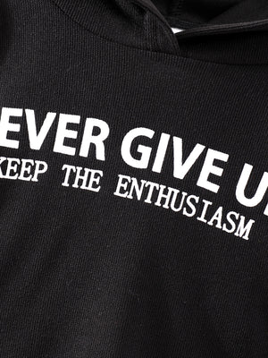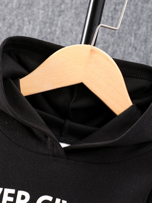 Black Hood Neck Printed Long Sleeves Polyester Hoodie & Trouser Set