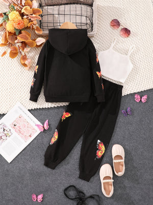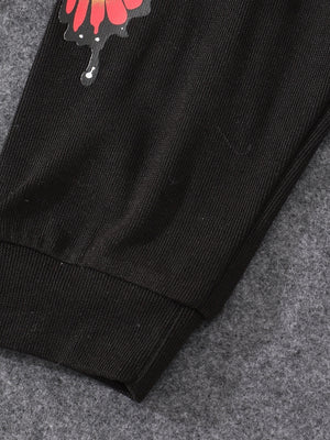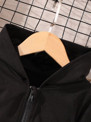 Black Hood Neck Solid Long Sleeves Polyester Hoodie & Trouser Set