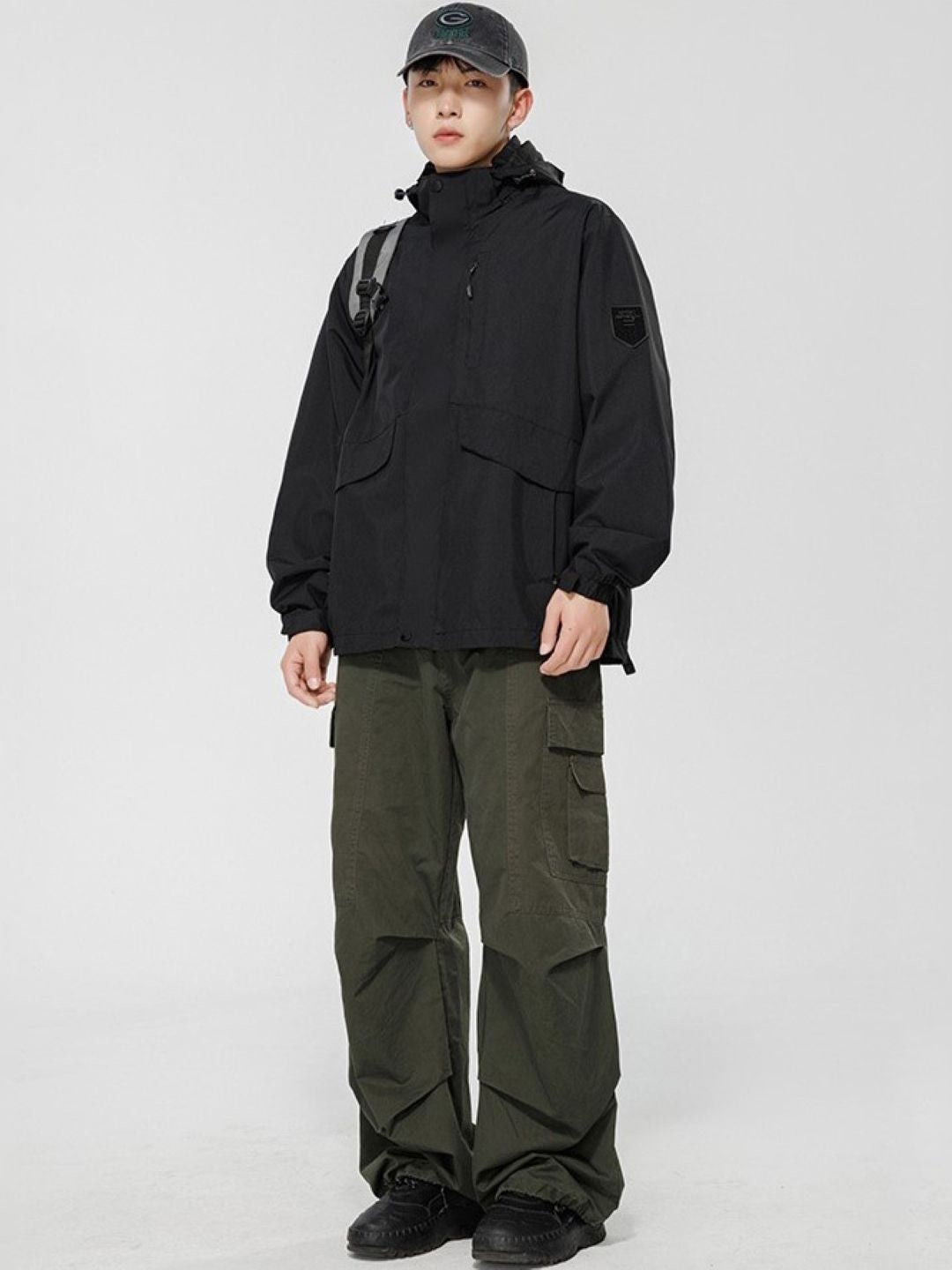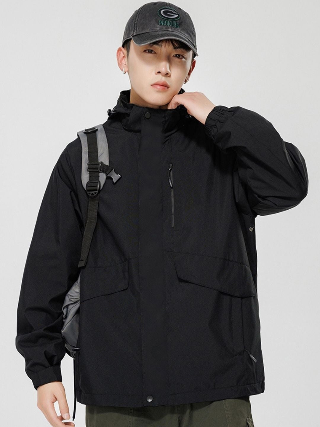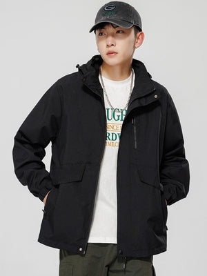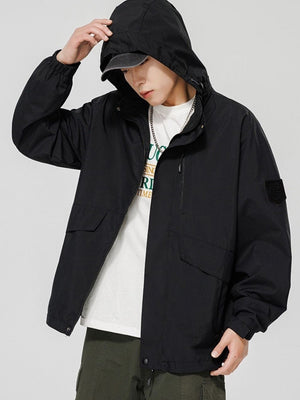 Black Hooded Long Sleeves Solid Polyester Open Front Jacket