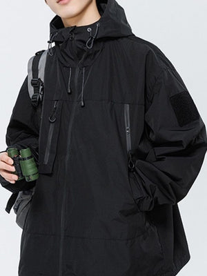 Black Hooded Long Sleeves Solid Polyester Open Front Jacket