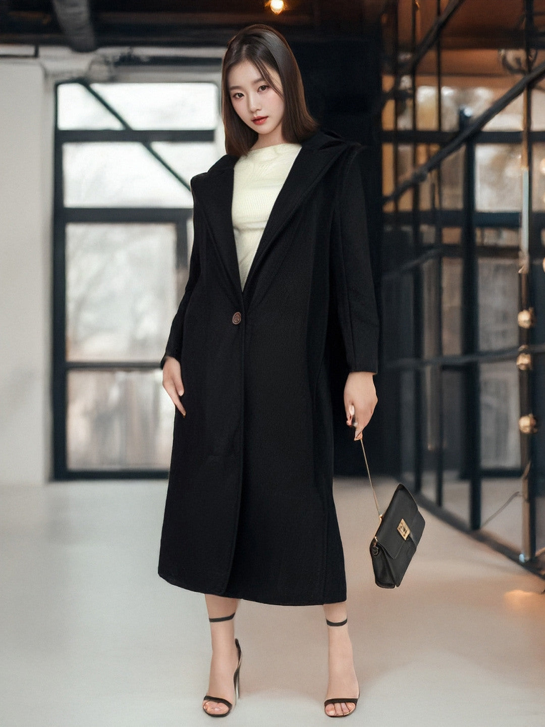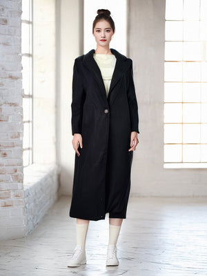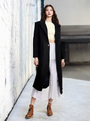 Black Lapel Collar Solid Long Sleeves Polyester Jacket