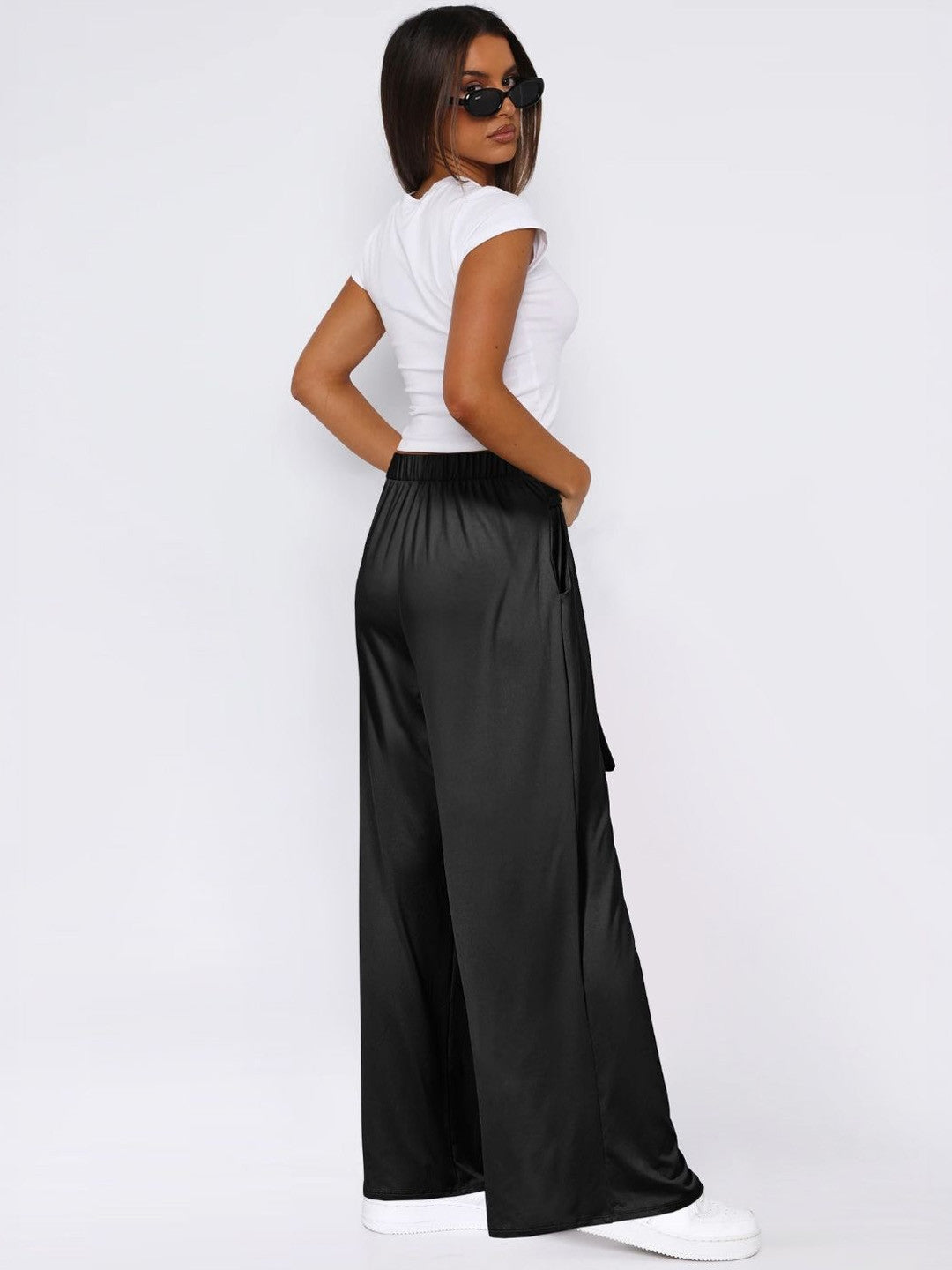 Black Loose Fit Solid Polyester Trouser