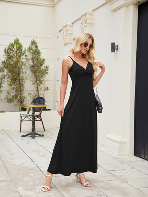 Elevate your wardrobe with this elegant Black Maxi Dress featuring a stylish twist front detail. Crafted from a soft, flowing fabric, this dress offers a flattering silhouette with adjustable spaghetti straps for a perfect fit. Ideal for casual outings, evening events, or any occasion where you want to make a chic statement. Pair it with heels and a clutch to complete your look.