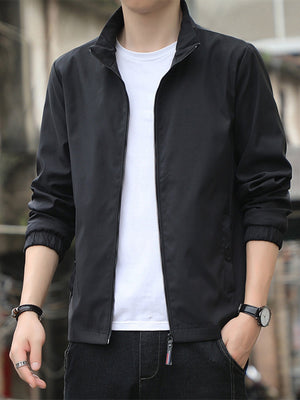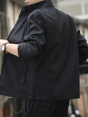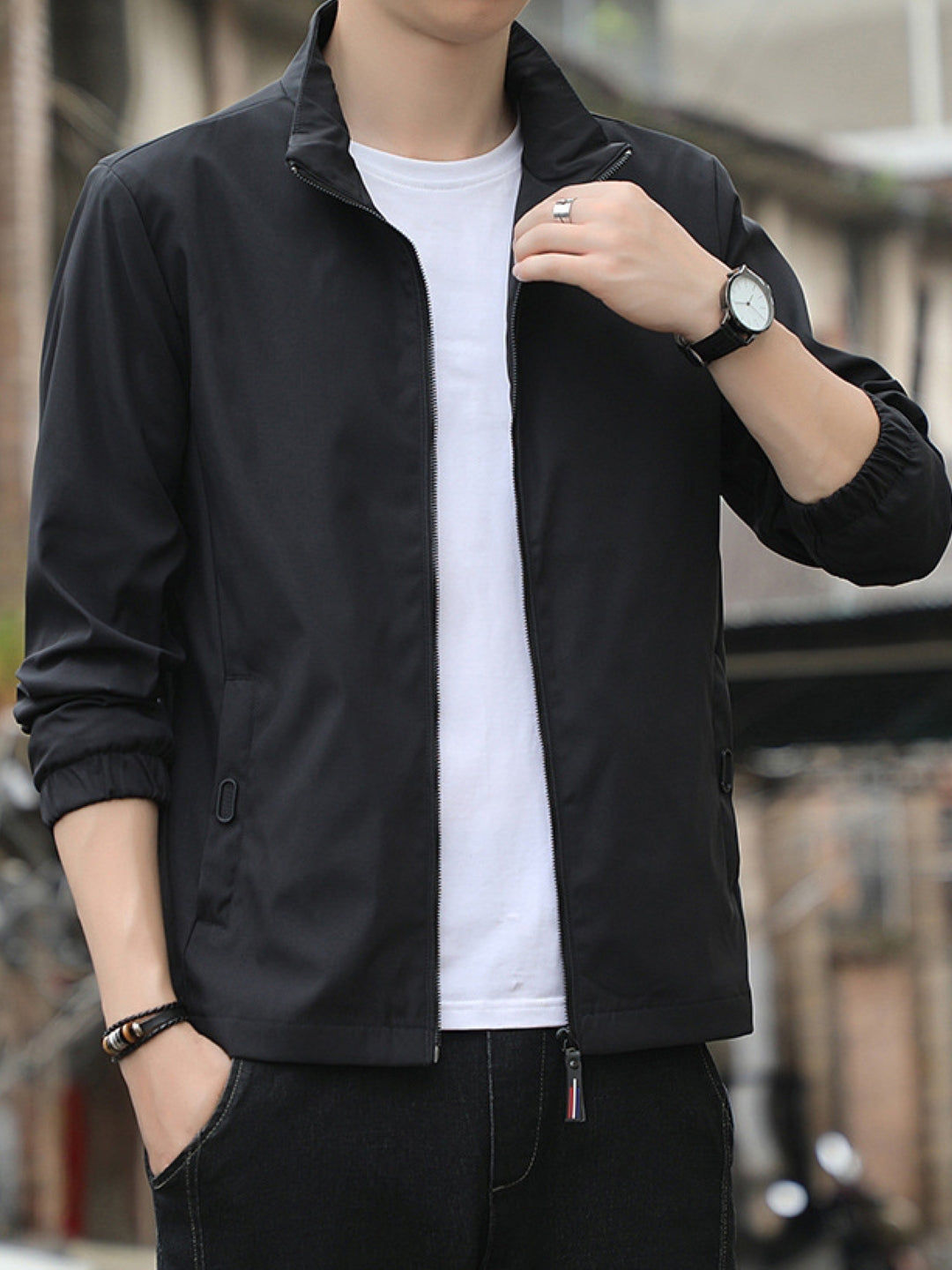 Black Mock Collar Long Sleeves Solid Polyester Open Front Jacket
