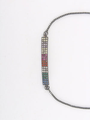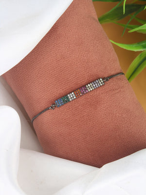 Black & Multi Brass Cubic Zirconia Brass-Plated Handcrafted Charm Bracelet