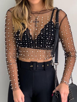 Introducing our Black Net Beaded Top, a stylish and versatile addition to your wardrobe. Made from high-quality polycotton fabric, this top offers a comfortable and breathable fit. The round neck design adds a touch of elegance, while the black color provides a timeless and sophisticated look.