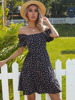 Black Off-Shoulder Polyester Dress