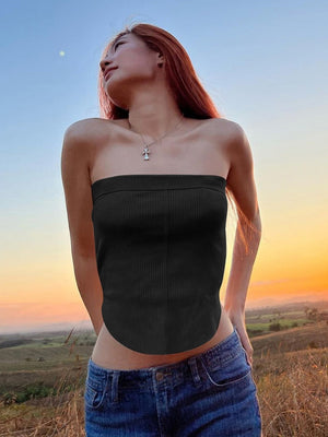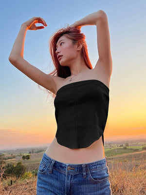 Black Off-Shoulder Sleeveless Polyester Tube Top