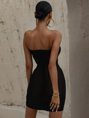 Black Off Shoulder Sleeveless Solid Polyester Bodycon Dress