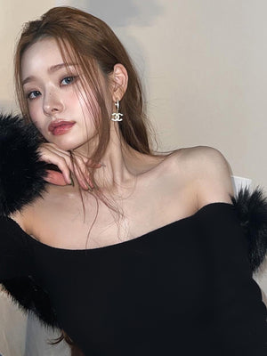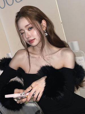 Black Off-Shoulder Solid Long Sleeves Above Knee Bodycon Polyester Dress