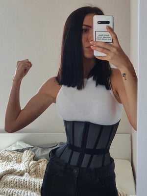 Black Off Shoulder Solid Sleeveless Corset Polyester Top