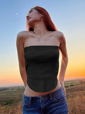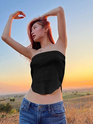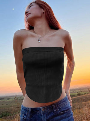 Black Off-Shoulder Solid Sleeveless Polyester Casual Top