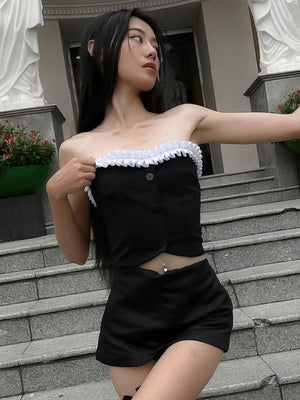 Black Off Shoulder Solid Sleeveless Polyester Top