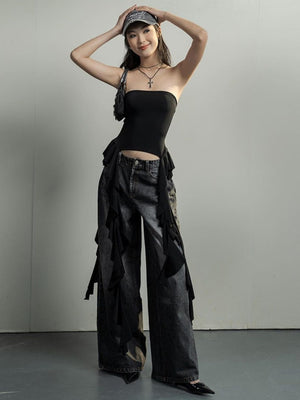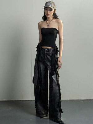 Black Off Shoulder Solid Sleeveless Polyester Top