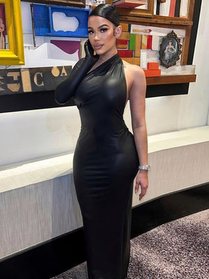 This Black One Shoulder Long Sleeves Solid Polyester Bodycon Dress is ideal for any special event. The elegant design and bodycon fit highlight your curves, with the details adding a touch of allure. Crafted from high-quality polyester fabric, this dress is both comfortable and chic.