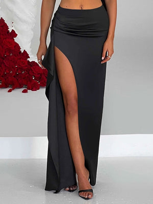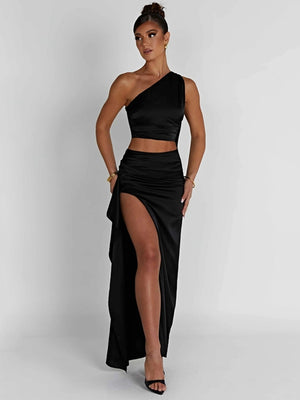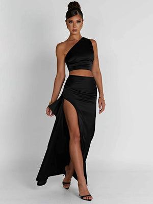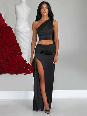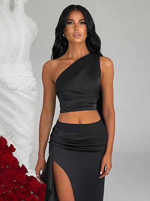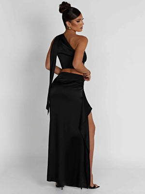 Black One Shoulder Sleeveless Solid Polyester Bodycon Cutout Side Slit Dress