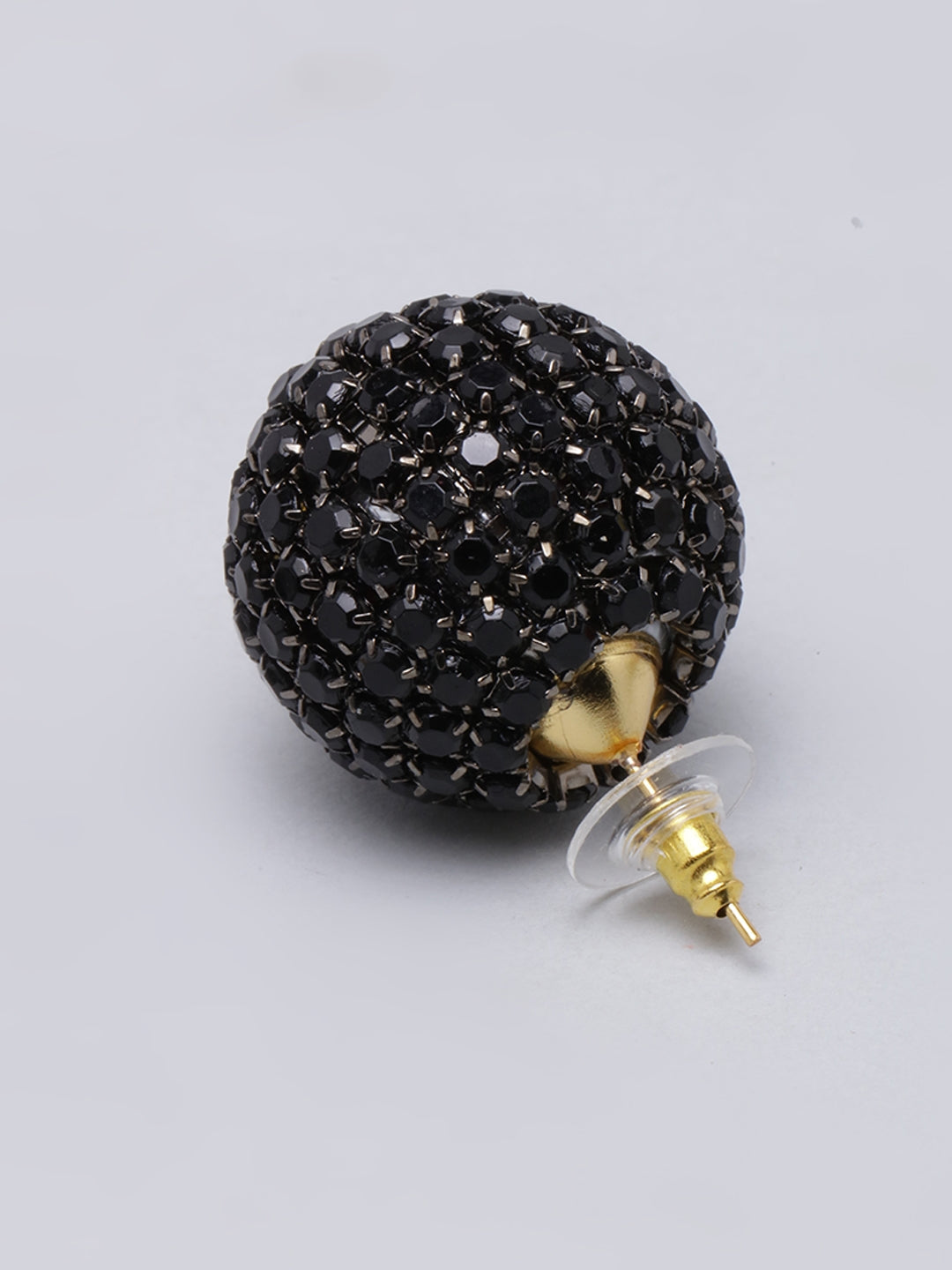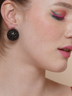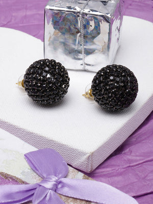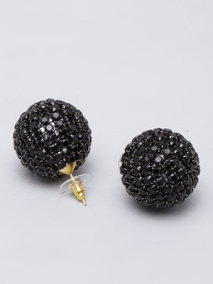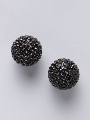 Black-Plated Black Rhinestone Studded Circular Earrings