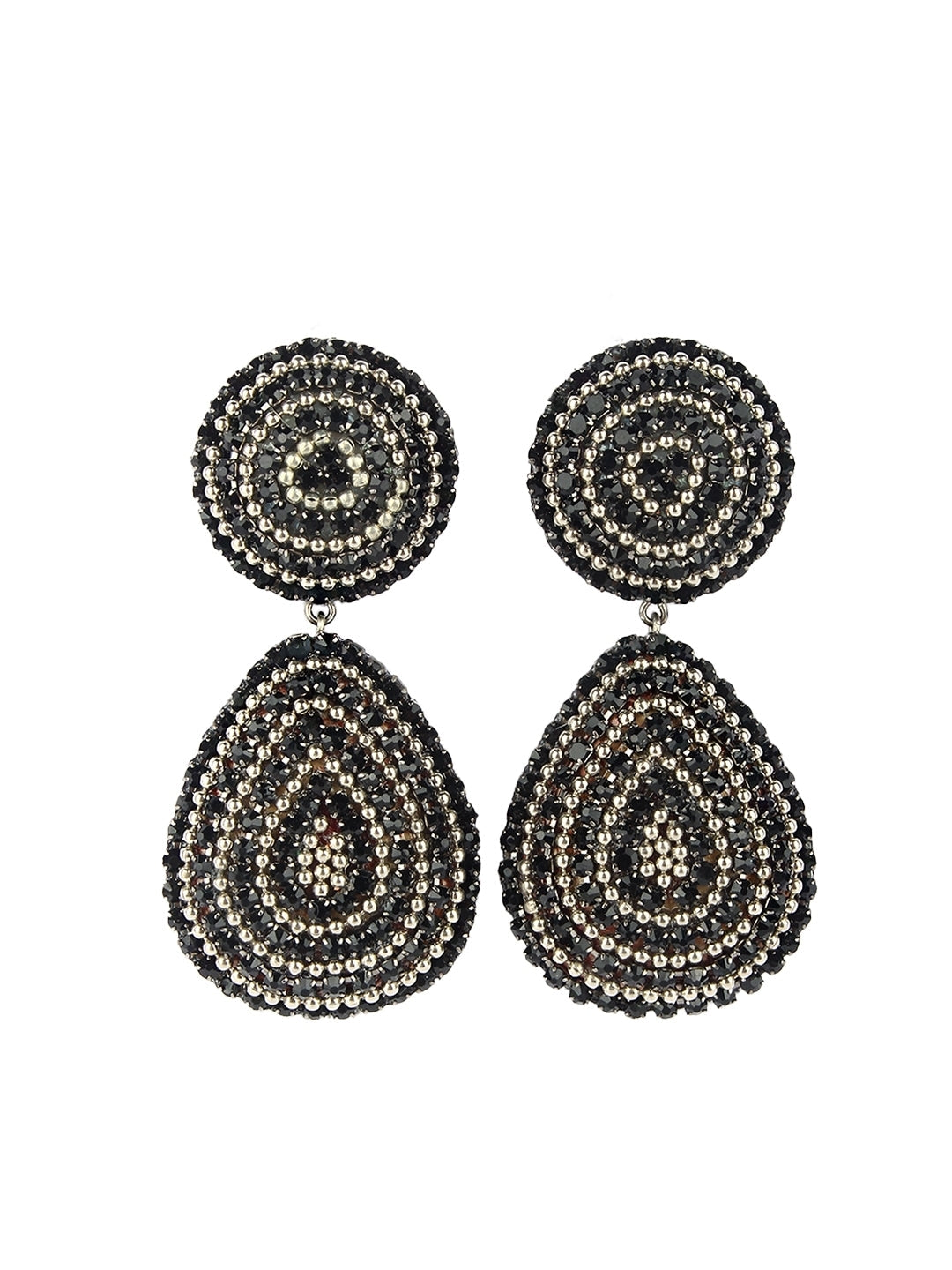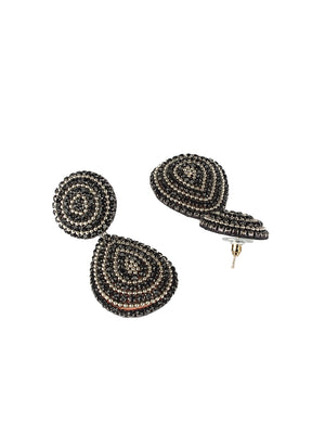 Brass-Plated Black & Transparent Rhinestone Studded Contemporary Brass Drop Earrings