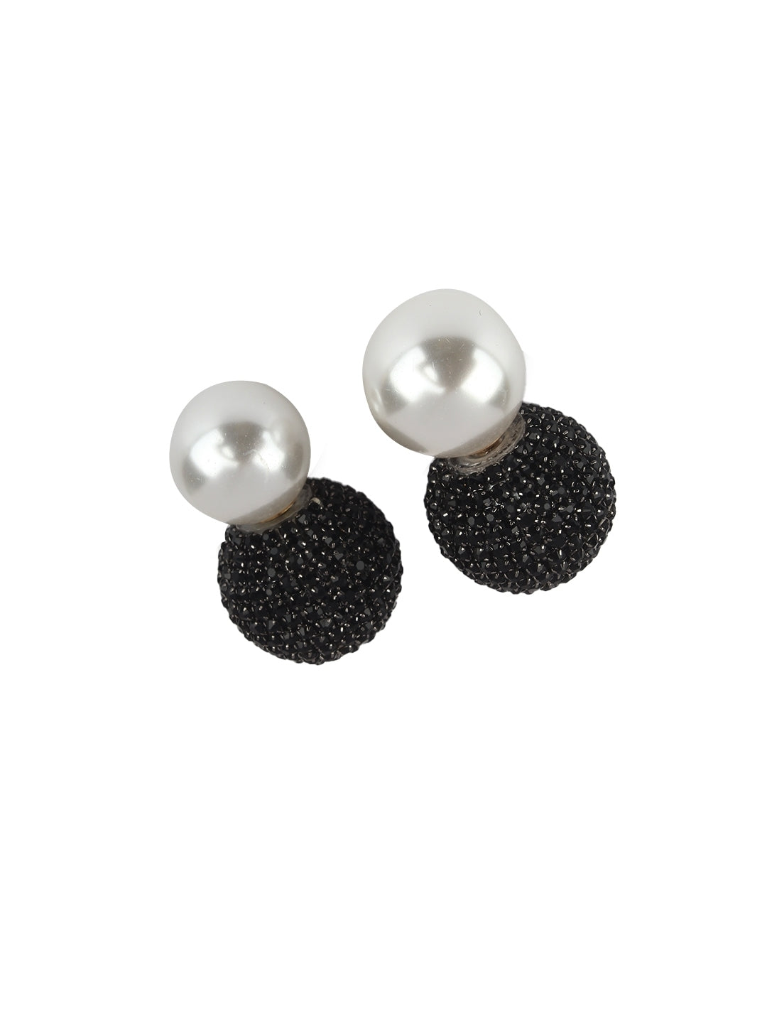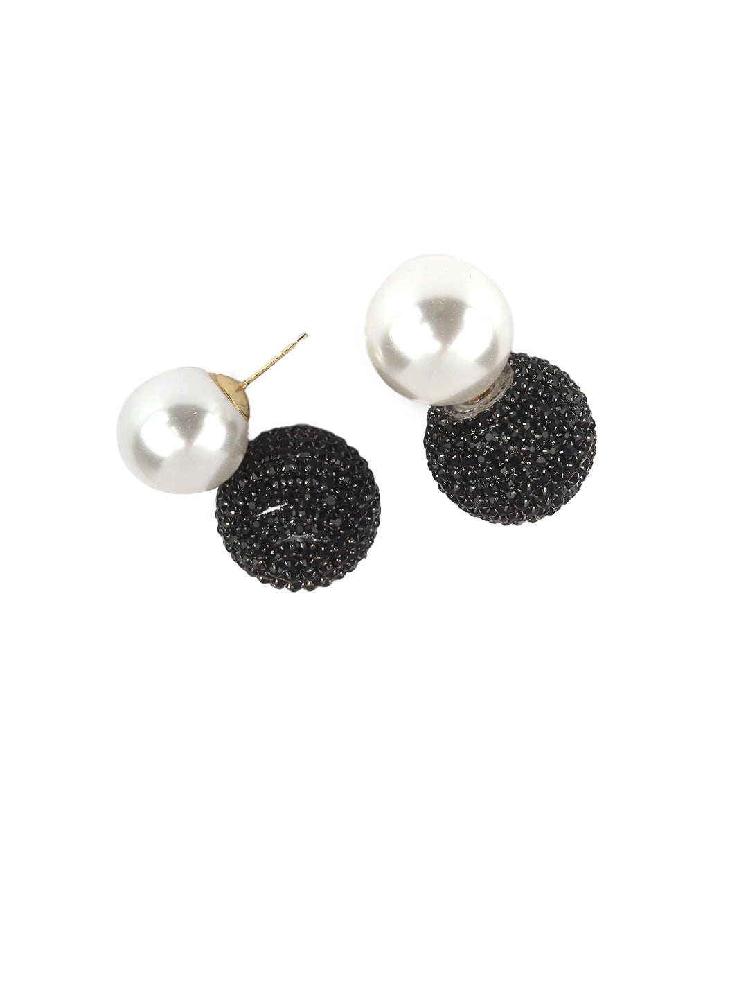 Brass-Plated Black & White Rhinestone Studded Contemporary Brass Studs