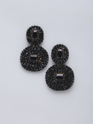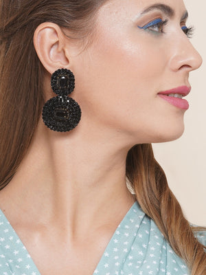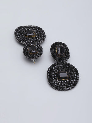 Black-Plated Rhinestone Studded Drop Earrings