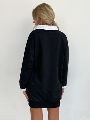 Black Polyester Shirt Collar Neck Sweater