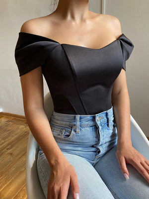 Introducing our Black Polyester Top, a stylish and versatile addition to your wardrobe. Made from high-quality polyester fabric, this top offers a comfortable and breathable fit. The off-shoulder design adds a touch of elegance, while the black color provides a timeless and sophisticated look.