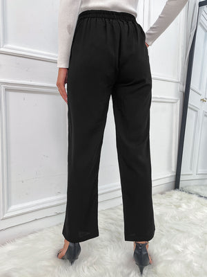 Achieve a polished look with these black polyester trousers, suitable for both casual and formal settings.