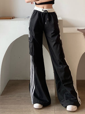 Black Printed Flared Polyester Regular Trousers
