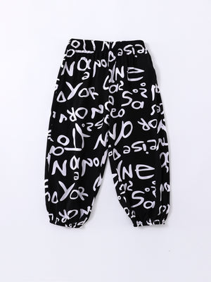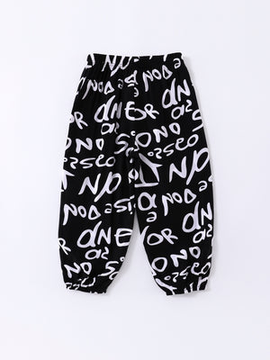 Black Printed Regular Fit Mid-Rise Slip-On Viscose Rayon Trouser