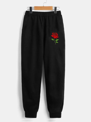 Black Printed Regular Fit Polyester Trouser