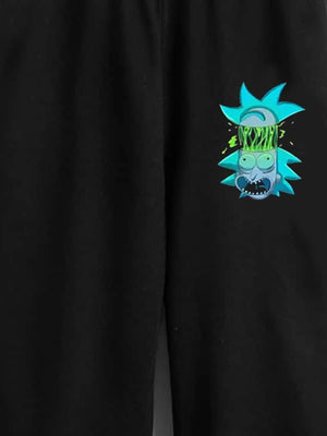 Black Printed Regular Fit Polyester Trouser