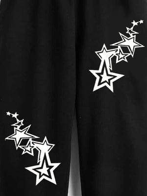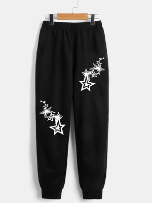 Black Printed Regular Fit Polyester Trouser