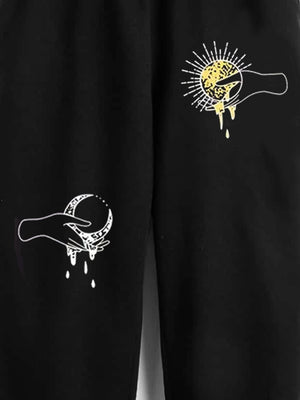 Black Printed Regular Fit Polyester Trouser